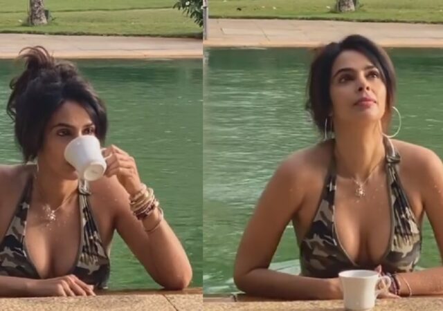 Watch Mallika Sherawat Enjoying Poolside Tea In Bikini